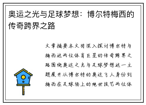 梅西预言:再夺五大联赛冠军!这篇文章将从多个方面详细阐述梅西再夺五大联赛冠军的可能性,包括技术实力、领导力、团队合作、心理素质等方面。通过深入的分析,展现梅西在足球领域的巅峰魅力。1、梅西的技术实力梅西作为足球史上最伟大的球员之一,其技术实力无可匹敌。他的运球、传球、射门技术皆为世界顶尖水准,能够在比赛中轻松改变战局。梅西的出色技术不仅能助他个人取得成功,也能带领球队走向胜利。他的个人技术完美结合...