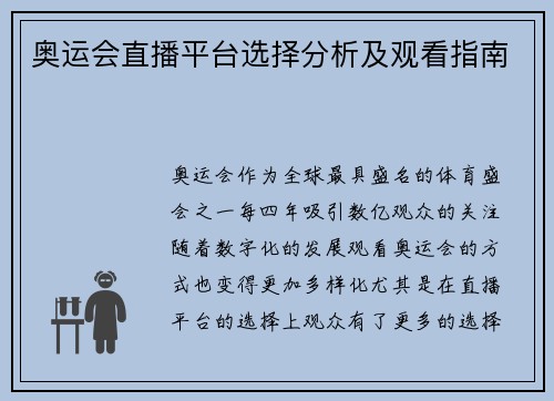 第29届奥运会即将开幕,全球的目光都聚焦在这场体育盛事上。从赛事的筹备工作到参赛选手的训练,再到各国代表团的阵容,奥运会无疑是世界体育界的一大盛事。本篇文章将从奥运会的历史意义、举办城市的准备、赛事亮点以及全球关注度等方面进行详细探讨,全面呈现第29届奥运会的独特魅力与全球瞩目。通过这些方面的分析,读者可以更好地理解奥运会的多重价值,以及它对全球体育与文化交流的重要影响。1、奥运会的历史意义与全球...
