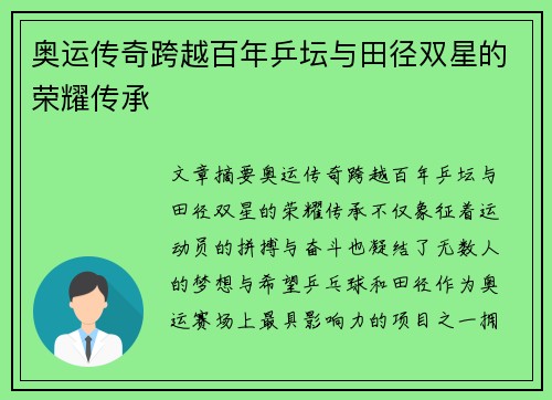 奥运会马拉松赛事是现代奥林匹克运动的一个重要组成部分,虽然它与古代奥林匹克的跑步比赛有所不同,但它依然保持了丰富的历史内涵。本文将从多个方面分析奥运会是否设有马拉松比赛及其历史发展。首先,文章将简要回顾马拉松比赛的起源与奥运历史上的首次设立,接着探讨其在奥运会中的演变过程。然后,文章将详细讨论马拉松赛事的演变及其对世界各国运动员的影响,最后分析这一赛事的未来发展趋势以及对奥运会的意义。通过这些分析...